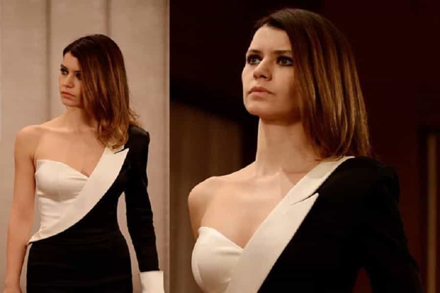 En el caso de Intikam - su nueva producción - Beren juega con los colores, permitiéndose osadas combinaciones de blanco y negro o distinto corte, como en el vestido de noche que luce en la foto. También transforma prendas comunes y corrientes, como el coqueto cinturón negro que adicionó a su outfit de la imagen inferior.