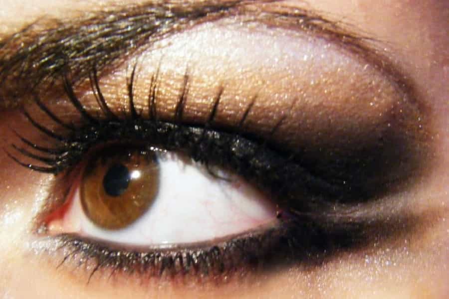 Para un look infartante de noche, aplica una sombra plateada o dorada (ojalá en crema) en la parte superior del párpado y cerca del lagrimal, para iluminar tu mirada. Luego, en el párpado inferior, pon sombra negra o café oscuro. Delinea tus ojos para darles intensidad y aplica una máscara de pestaña que alargue tus pestañas. Para finalizar, vierte en una esponja un poco de base para quitar el maquillaje sobrante.