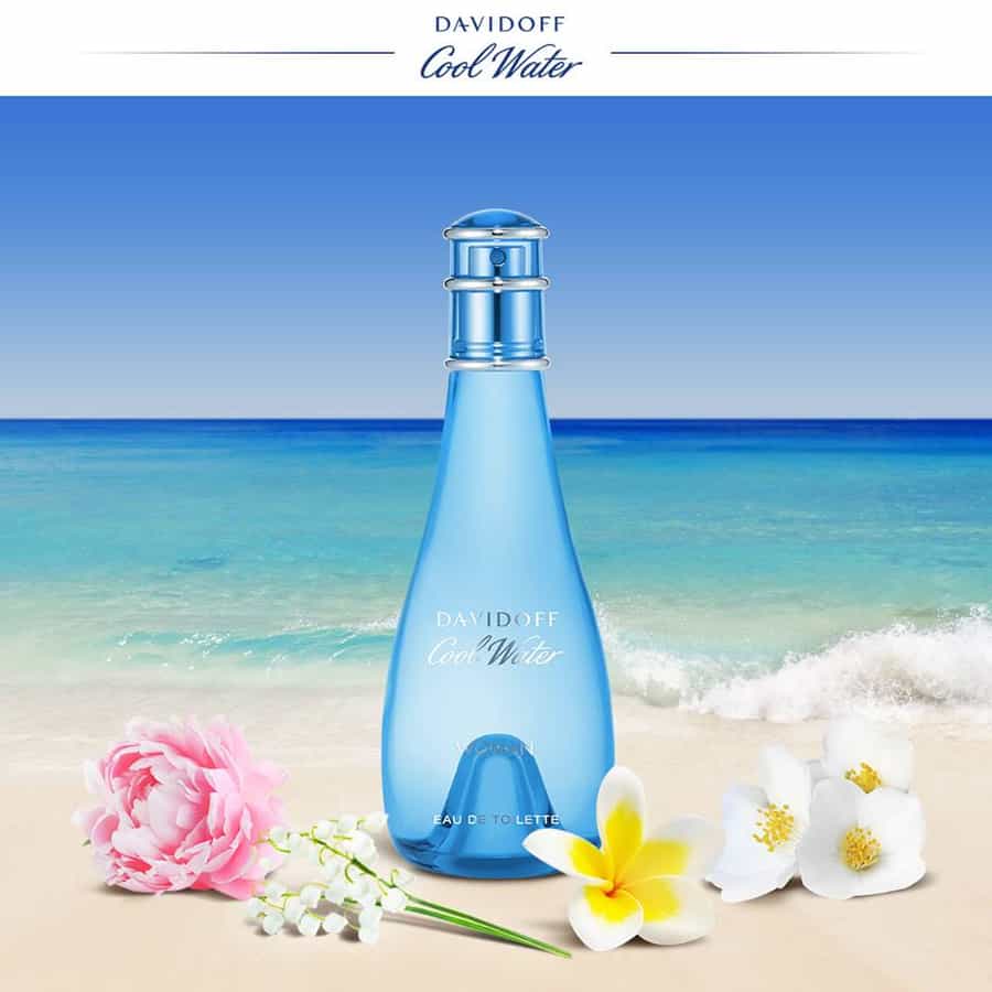 3. Cool Water , de Davidoff: lanzado en 1996, este perfume tiene su versión masculina. Pero la femenina es bastante refrescante, y a pesar de tener notas frutales y florales, es más que nada un perfume cítrico, en una linda y estilizada botella azul. Aunque tiene muchas versiones (Summer Fizz, Pure Pacific, Ice Fresh, etc..) estamos hablando del clásico Cool Water.