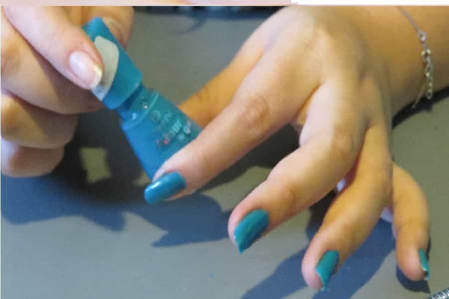 - Esmalta con el color más claro de los que elegiste, deja que se seque totalmente por algunos minutos.