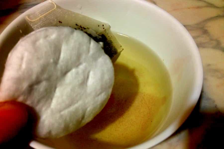 Paso 5: Pasar el algodón por tu rostro, como si te estuvieses limpiando. Deja tu rostro húmedo por unos 3 minutos y luego limpia. Puedes repetir esto si lo deseas y la idea es que lo hagas unas 3 veces a la semana. También sirve para deshinchar las bolsas bajo los ojos,si dejas el té enfriar en el refrigerador y untas un algodón en el té frío por las mañanas.