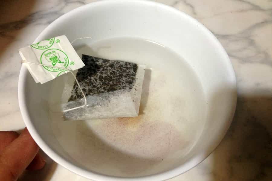 Paso 4: humedecer algodón en la fuente con té verde tibio
