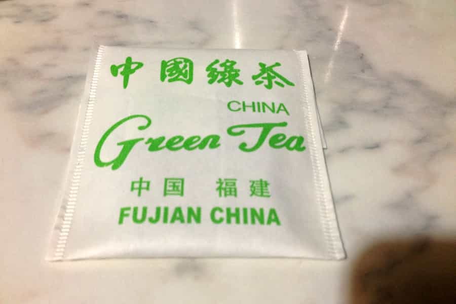 Paso 2: Poner el té verde en la fuente con agua caliente (Yo uso esa marca, simplemente porque es la que tenía a mano y es la que uno siempre encuentra en los supermercados, una caja de 20 bolsitas cuesta aprox. $1000)