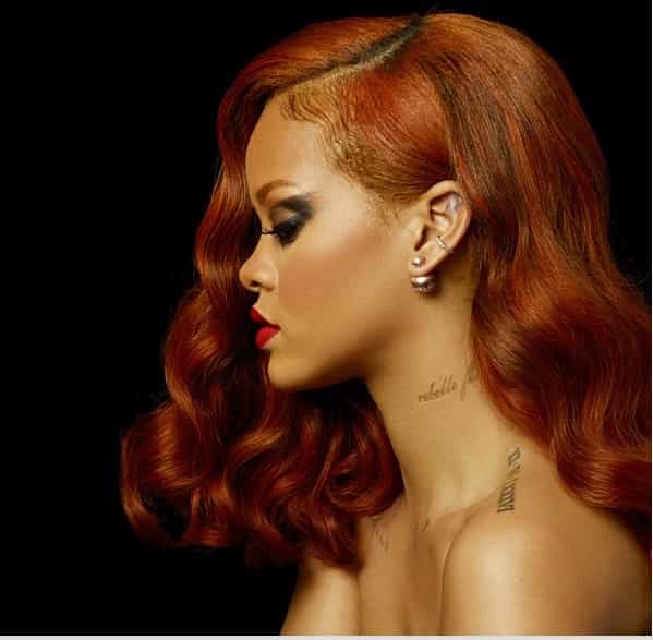 Su estilo de cabello también es reflejo de su afán por estar en constante movimiento, por lo cual ha pasado del cabello muy largo a extremadamente corto, de los rulos al liso perfecto y del castaño oscuro al tono rojo furioso. Rihanna, en su look, ha roto una regla de oro en cuanto al tinturado de cabello: que las morenas no pueden ser rubias.