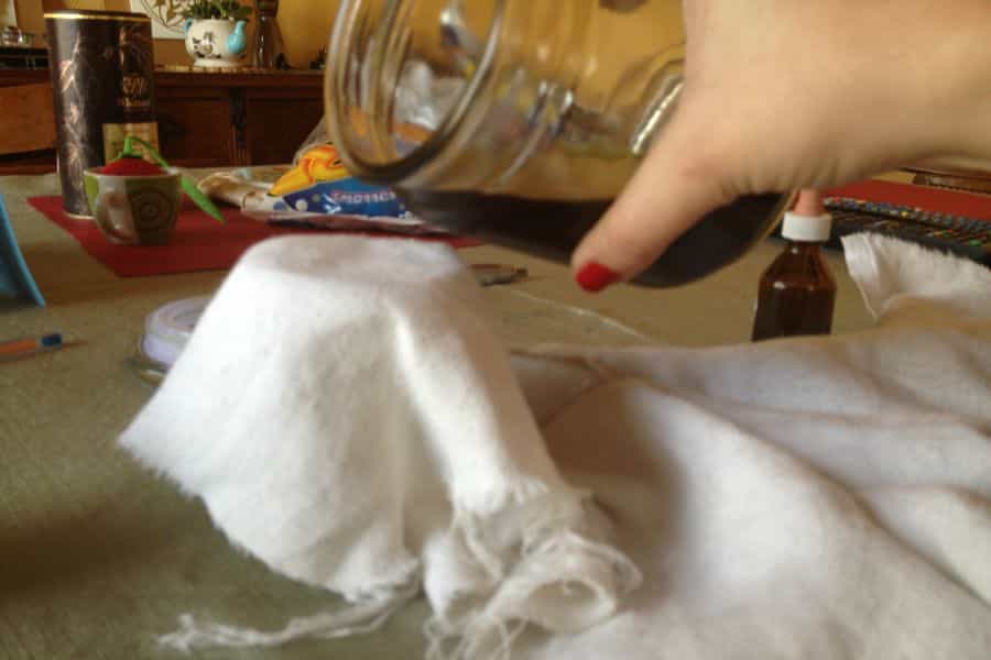 - Cuela el líquido con ayuda del paño de cocina o el trozo de tela. Aprieta fuertemente las hojas, para extraer todo el líquido. Guarda tu tintura en envases con gotario, para que sea más sencillo dosificar y desecha las hojas y deja solamente el líquido puro en el envase.