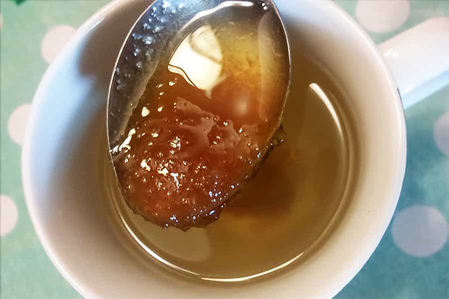 - En un vaso grande de agua tibia disuelve 2 cucharadas de miel.