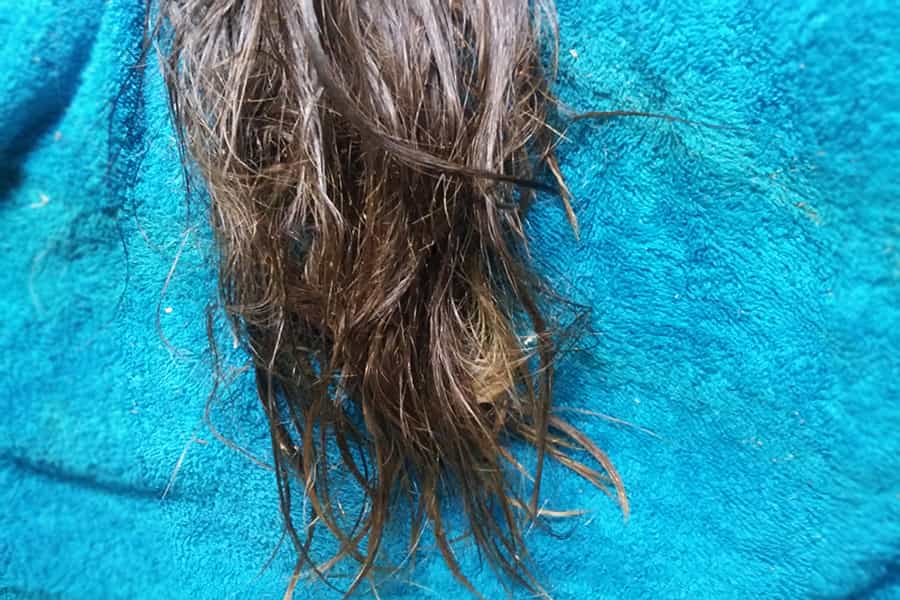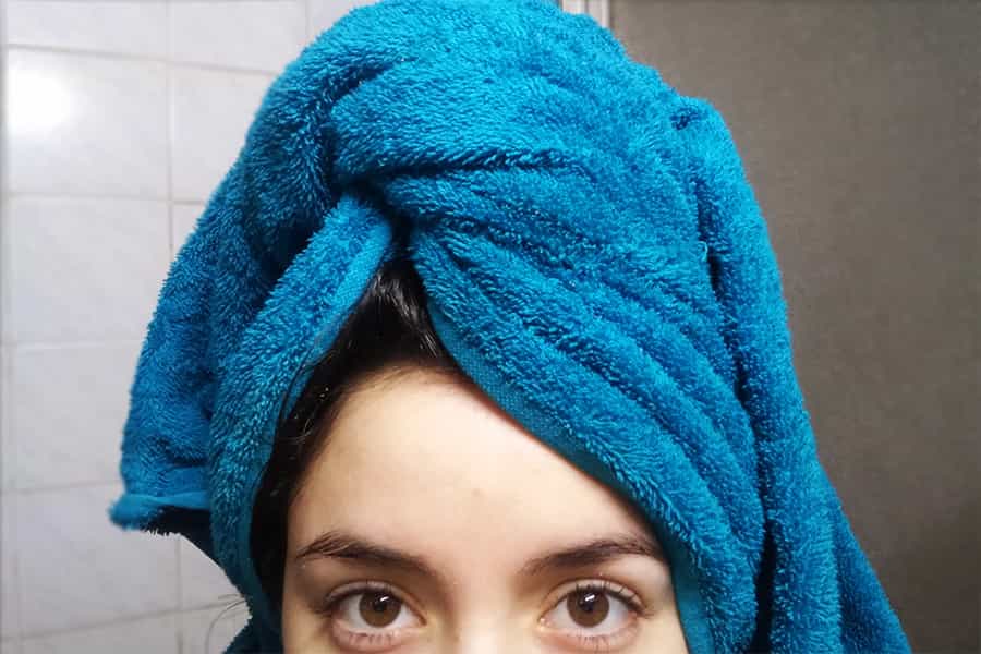 4. Masajea y deja que la mezcla actúe por mínimo 20 minutos. Mientras más tiempo la dejes actuar, mejor será el resultado. También puedes envolver tu cabello con una toalla o utilizar un gorro de ducha.