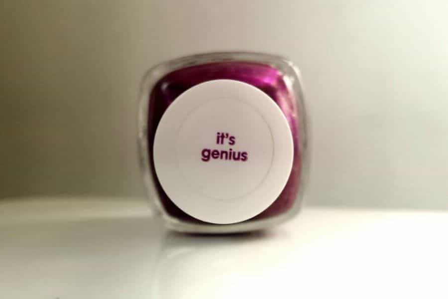 En este caso te mostraré el color "It's genius", es un color burdeo/ciruela/morado muy lindo, y lo que personalmente más me gusta es que tiene pequeños brillitos plateados que en la luz resplandecen, haciendo ver mis uñas simplemente perfectas. Como es un esmalte con brillos, es ideal para la noche.