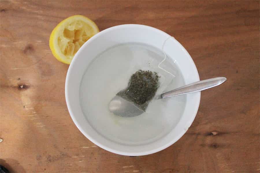 En primer lugar, debemos hervir agua y luego agregarla en un pote o frasco mediano que contendrá las dos bolsitas de té de manzanilla más el jugo de limón. Si quieres maximizar los resultados, a la vez que proteges tu cabello, puedes añadir un poco de miel.