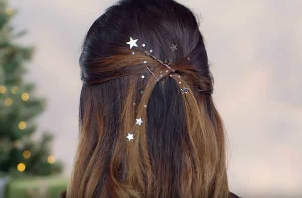 Adornos en tu pelo: Pega confetti sobre tu peinado con pegamento para pestañas postizas, en este caso, unas cuantas estrellitas plateadas dan la ilusión de una constelación en tu pelo. No hagas caso al famoso "menos es más": es una fecha especial y puedes salirte de la norma (en realidad, eso puedes hacerlo cuando quieras).