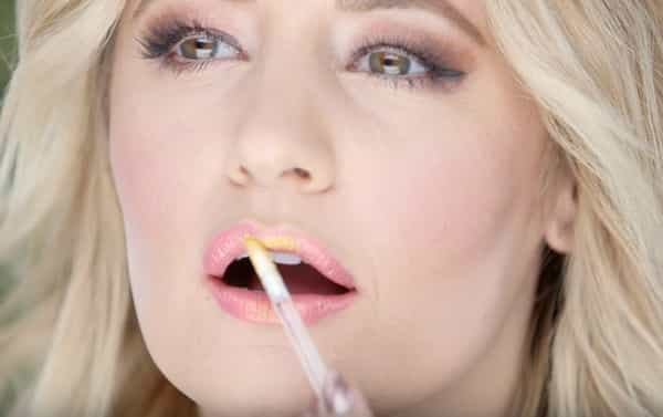 Aplica sombra de ojos brillante en polvo sobre tu lápiz labial favorito en el centro de tu boca. En este caso se usó un lápiz labial color rosado y se aplicó sombra de ojos dorada. El resultado es un difuminado brillante que queda muy bonito. También se ve muy bien la sombra dorada sobre los labios rojos, dándole un toque mas anaranjado. Pero no hay límites, prueba con los tonos que más te gusten.