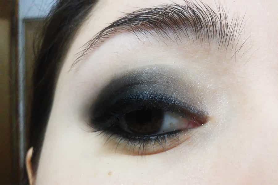 5. Ahora aplica una sombra negra sobre todo el párpado móvil, remarcando el borde exterior. También aplica un poco de sombra negra sobre el borde inferior del ojo.