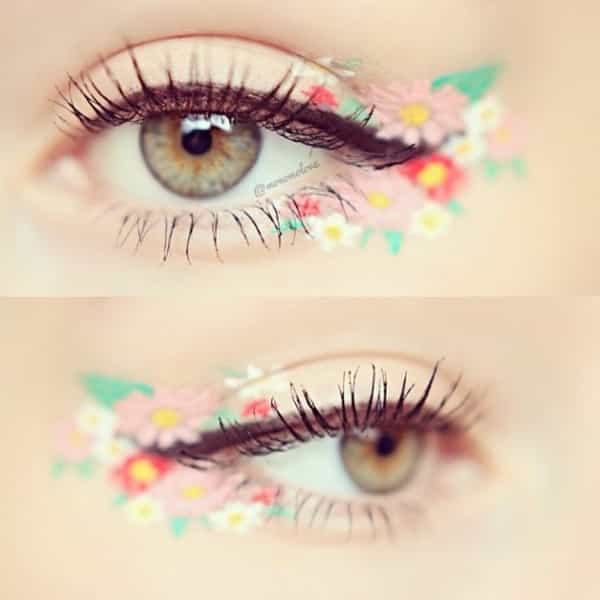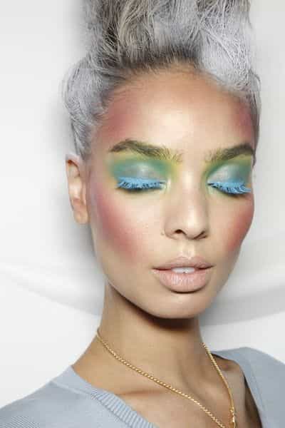 Maquillaje colorido de ojos: aquí el color no se limita a los párpados, cejas y pestañas están incluidas en la fiesta.