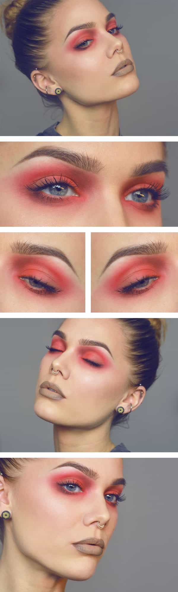 Sombra de ojos roja y labios café/grisáceo. Una combinación que en realidad no a cualquiera le queda bien, pero sí a Linda Hallberg.