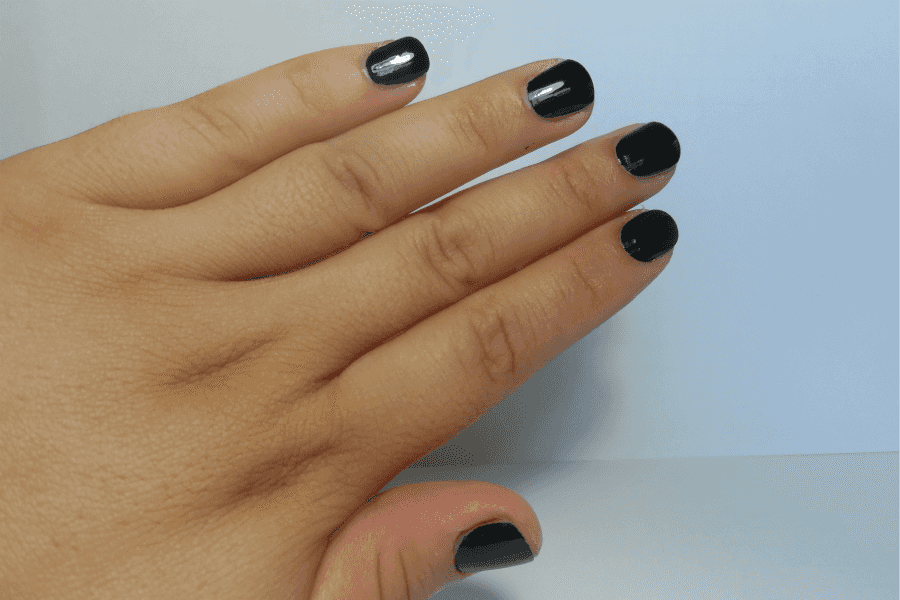 Paso 2. Aplicar una capa de esmalte "negro osado" en la totalidad de las uñas, para obtener un secado rápido, aplicar una o dos gotas del producto y esperar 60 segundos.