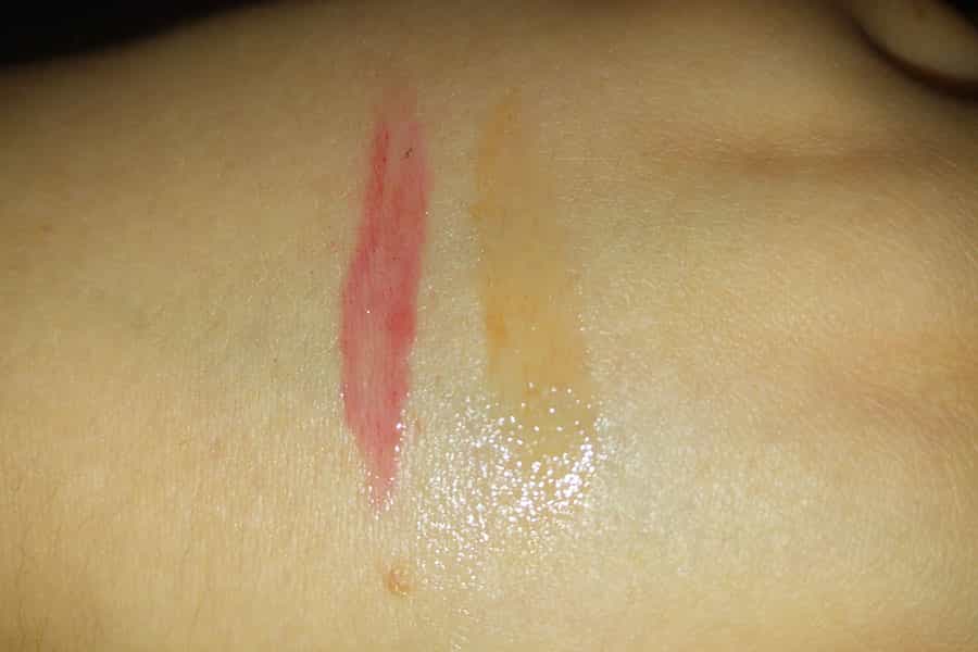 Aunque el color es muy tenue, así se ven sobre mi mano los brillos con color