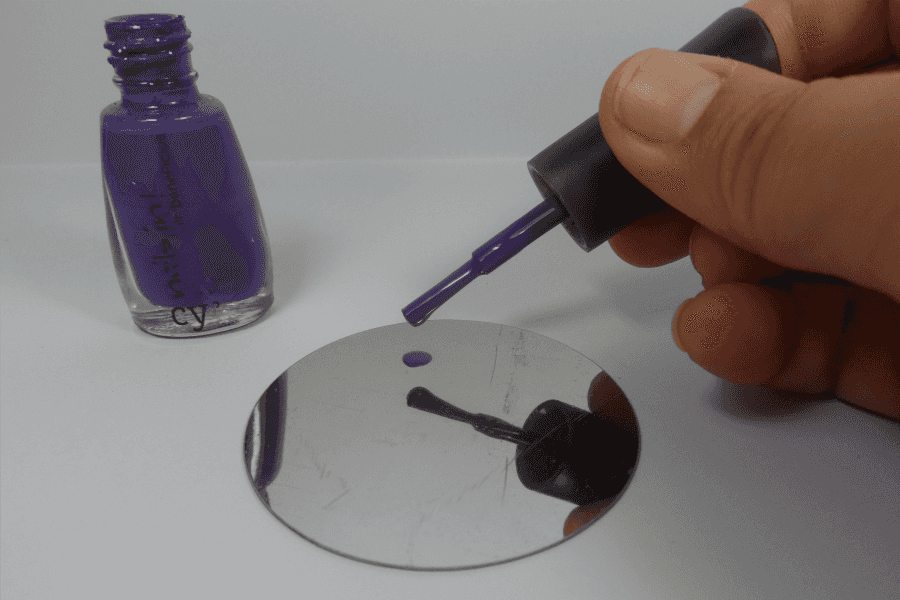 Paso 4. tomaremos un trozo de papel o lo que este a nuestro alcance para dejar un poco del esmalte Violet in sobre el, esto nos permitirá un mejor acceso al momento de posar el decorador, debemos tener en cuenta que estando expuesto al aire, este se secará rápido, por lo cual no es recomendable sacar mucho esmalte.