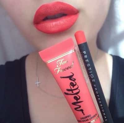 Lamentamos que Too Faced se haya ido de Chile, porque sus productos son muy buenos. Aquí, de la ya famosa línea Melted, en un lindo tono coral.