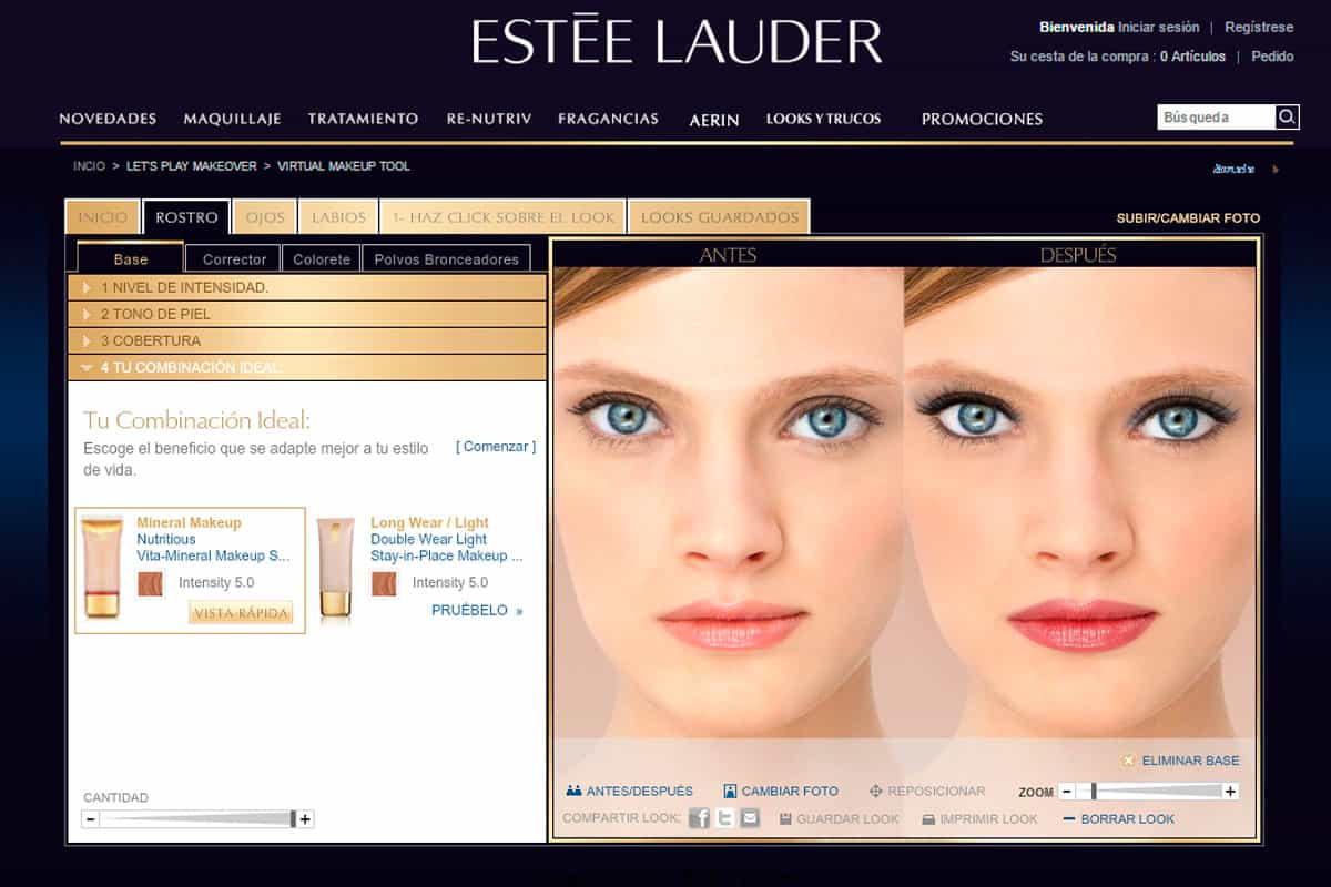 4. Let’s Play Makeover: con un llamado para que nos atrevamos a cambiar de imagen, la web de Estée Lauder nos presenta distintas ruedas de colores para maquillar el rostro, ojos y labios.