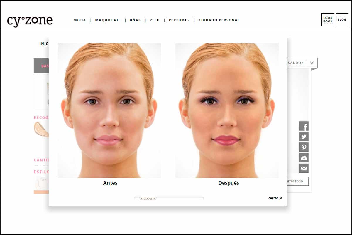 5. Maquillador virtual: esta alternativa del sitio Cyzone ofrece variados productos de distintos tonos para dar color y luminosidad a nuestro maquillaje.