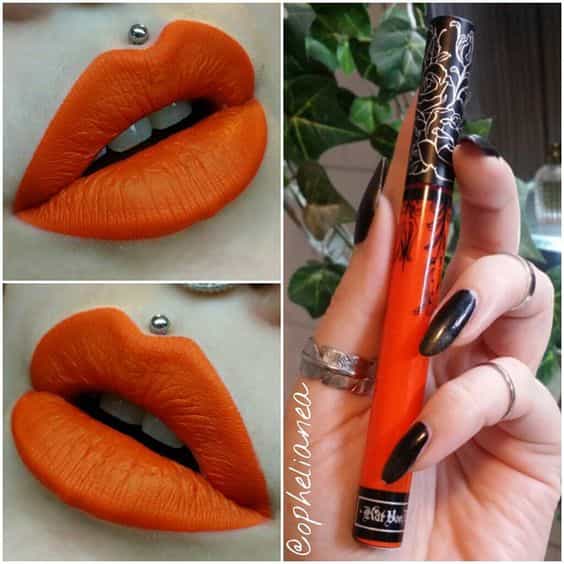 Kat Von D en A- Go Go (Un naranjo con tintes cobrizos, pero en mate)