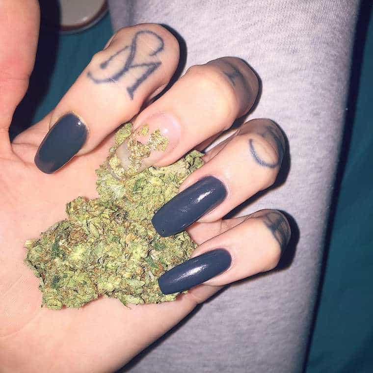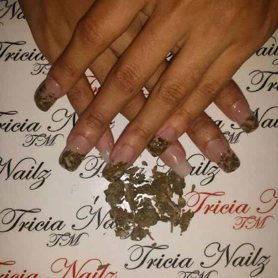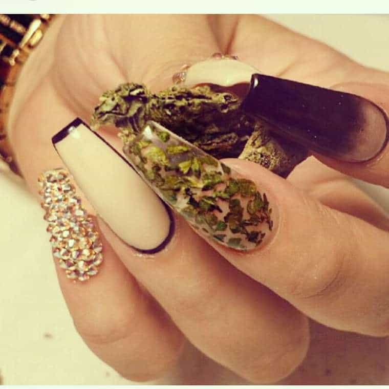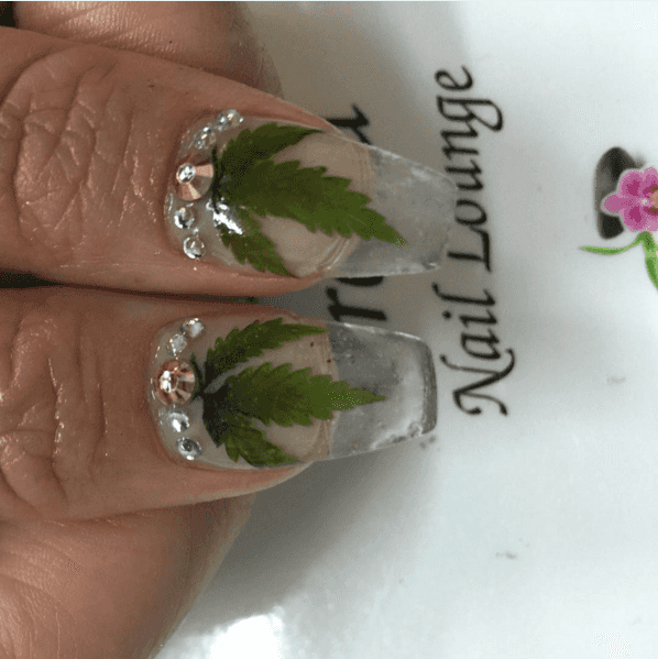 Las tendencias peculiares para uñas las no paran, primero fueron las Bubble Nails, después llegaron las Furry Nails y, hace poco apareció la moda de las Uñas con Pompones. Para aprovechar la ocasión, como ya estamos en abril, mes en que se celebra el Día Internacional de la Marihuana, ha llegado el turno de las Weed Nails o Uñas de Marihuana. En honor al llamado 4/20- 20 de abril- las fanáticas y expertas del Nail Art buscaron una forma un poco extravagante de celebrar este día, se trata añadir hierbas o hilos de la planta de Marihuana, que se mezclan con una capa de esmalte transparente, brillo y otros diseños diferentes.