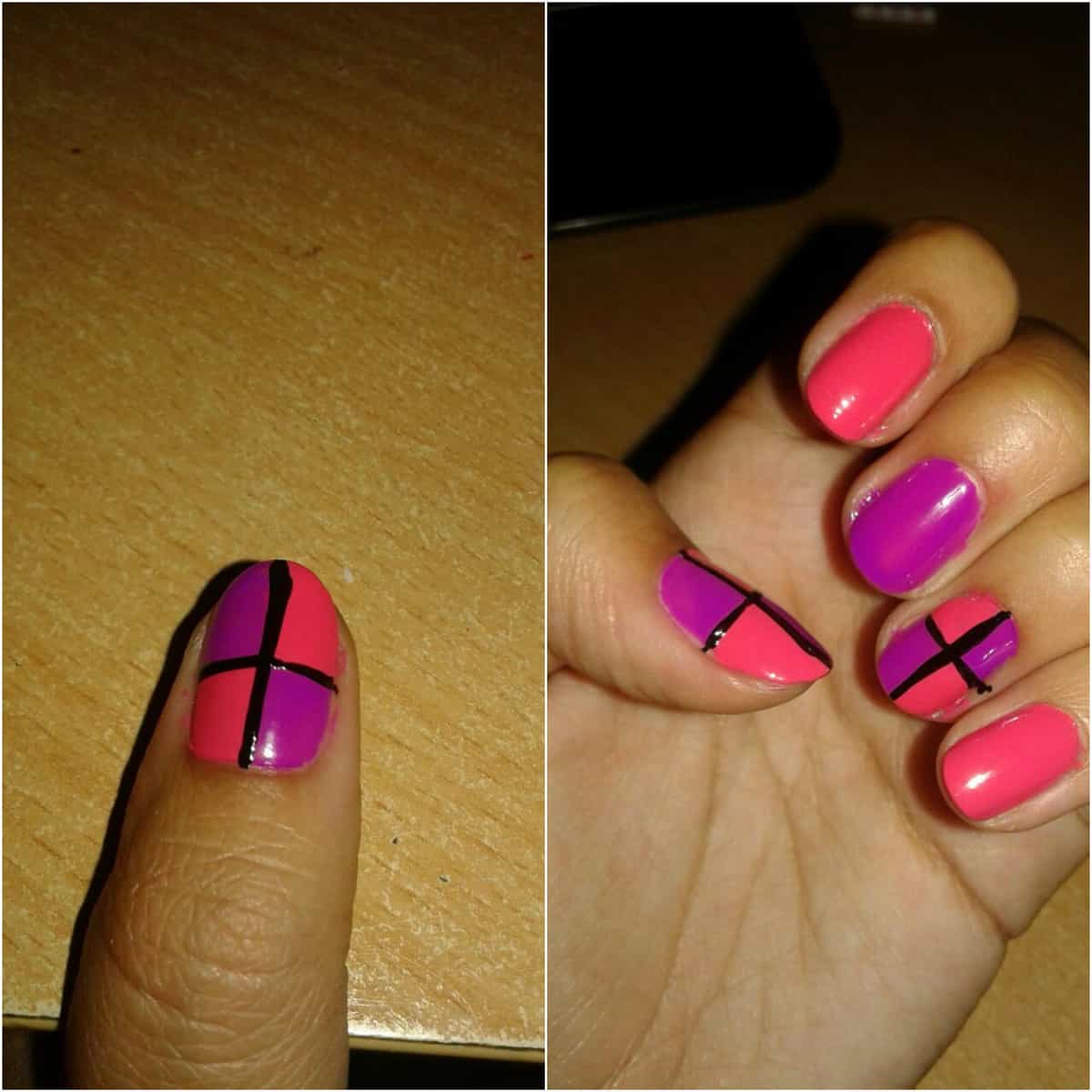Marca el contorno de cada división (una especie de cruz), con esmalte negro. Trata de que este sea de pincel delgado o utiliza un pincel delgado aparte.