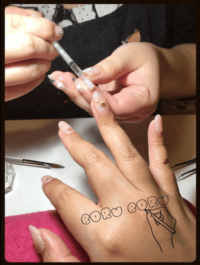 Algunas de lo hacen directamente en la uñas y otras personas trabajan en el diseño y luego las pegan.