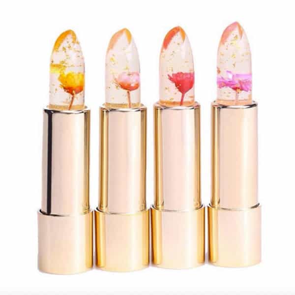 Suena a magia y también suena como algo alocado, pero lo más increíble es que eso no es todo. El labial, a simple vista, parece esos de mentira, que se le regala a la sobrina para que sienta que tiene maquillaje, porque es transparente y tiene flores. ¿Raro no? ¡A mi me encanta! O sea, no sólo es bonito porque tiene flores, sino que es realmente mágico porque es transparente y aún así aporta color a tus labios, ¡que cambia de tono según la temperatura!