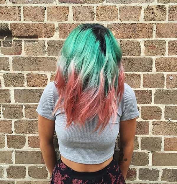 Uno pensaría que colores como rosado y verde podrían verse mal juntos, pero la verdad es que el resultado de ambos tonos fusionados es bastante atractivo. Si no me crees mira aquí algunos de los estilos del Watermelon hair:
