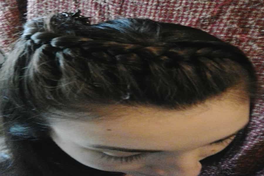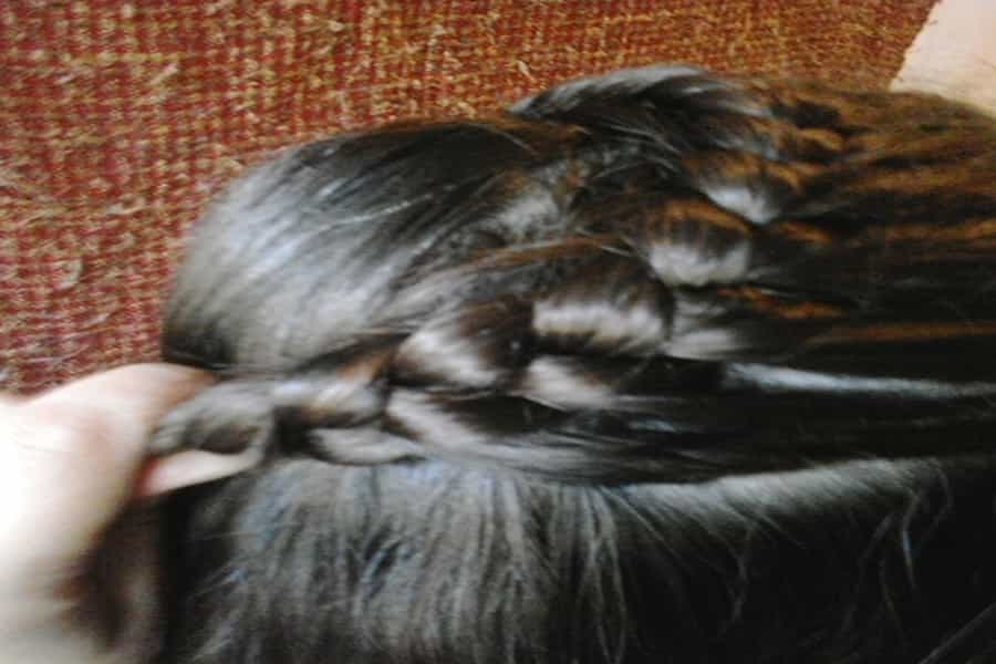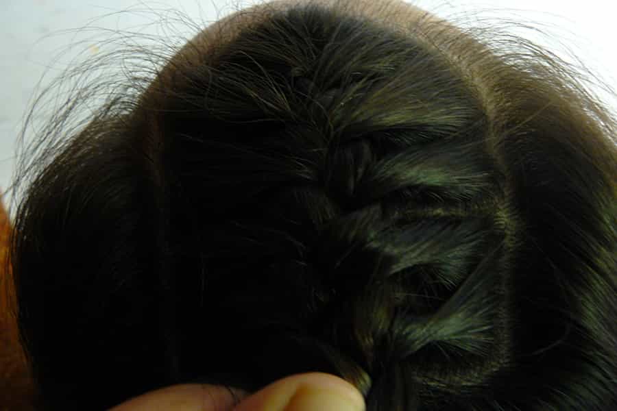 3. Luego toma la parte del cabello separada que más se acerca a tu oreja y comienza a trenzar.