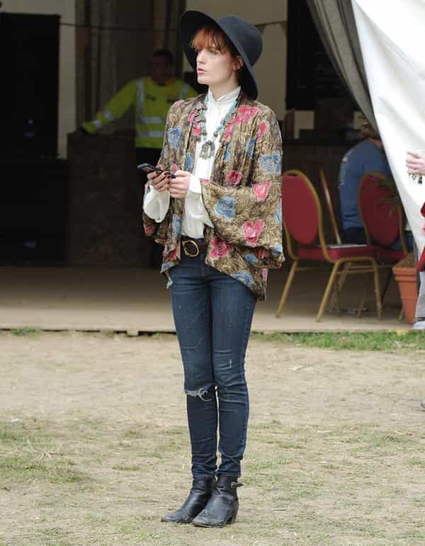 Aquí la vemos en el festival de Glastonbury del año 2013 con una tenida más casual, de día, aunque siempre dentro del estilo folk.